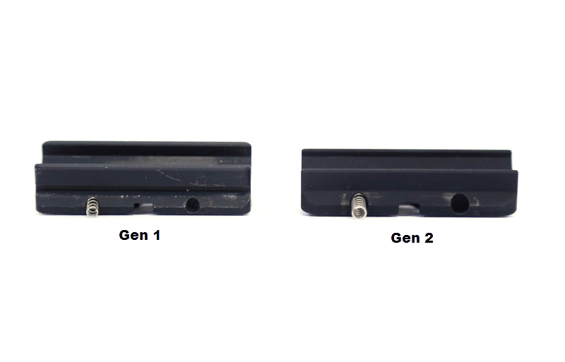 American Defense mounts have two different types of springs, Generation 1 and Generation 2. The Gen 1 springs are the old style springs that are the same diameter throughout the spring. They are silver in color. The Gen 2 springs have one larger end, that is captured in the spring pocket on the mount to prevent it from falling out. They are gold in color. When you request replacement springs, please specify which generation springs you need. Generation 1 mounts are being phased out and all newly manufactured ADM mounts will be Generation 2, although there are still some Gen 1 mounts in circulation with our dealers and distributors.