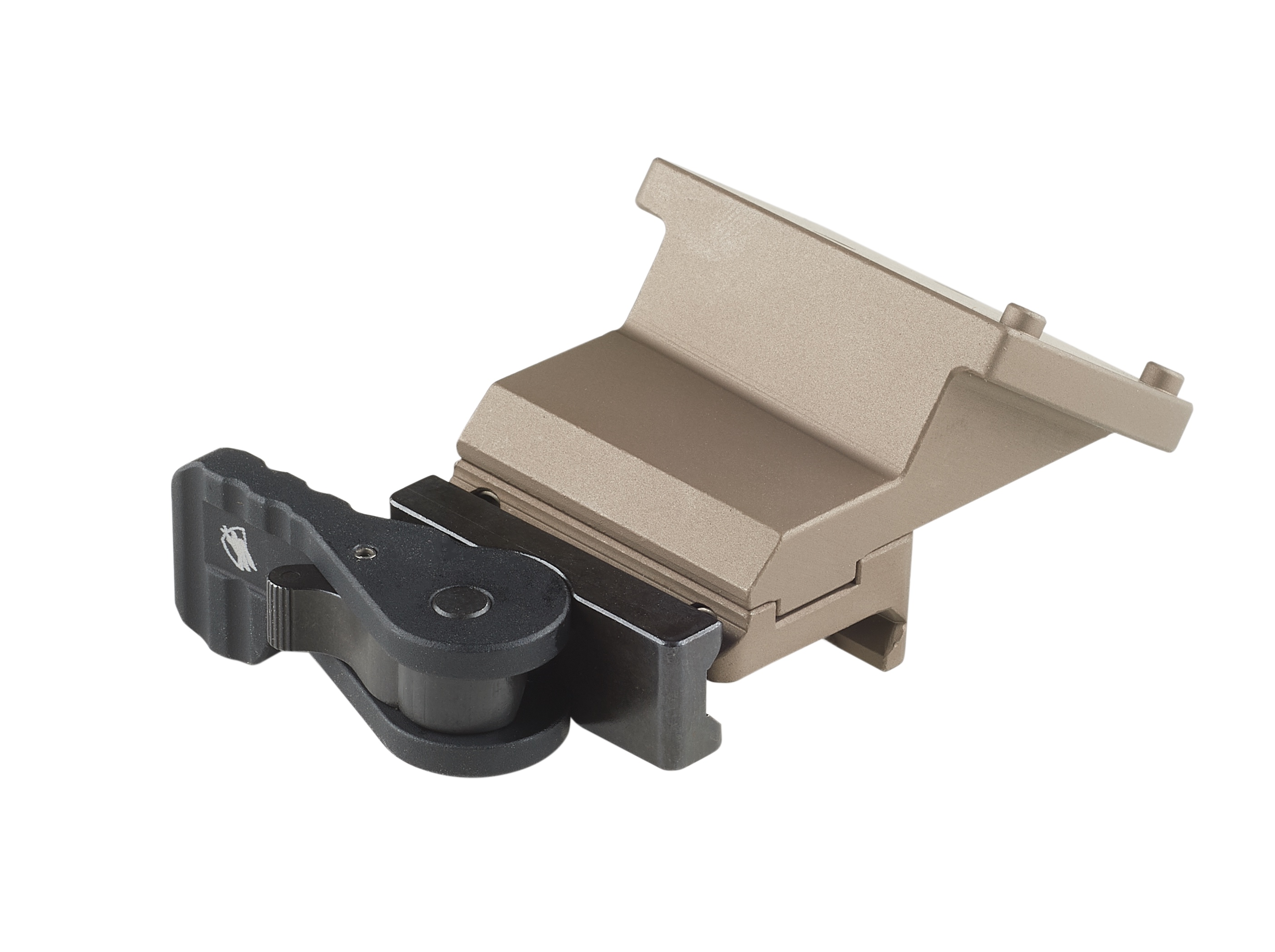 American Defense Offset RMR mount. Available in 33 and 45 degree offsets, with Right or Left hand mounting. Left Hand mount will place the optic on the Left Side of the rifle. Right Hand mount will place the optic on the Right Side of the rifle. The mount requires ½ of clearance under the scope tube or eye piece to fit under the scope.The base is 1.35†long. The 33* model was designed as a low profile offset RMR Mount. The 45* is for use with the ACOG and scopes with large adjustment caps. Weight- 3oz
