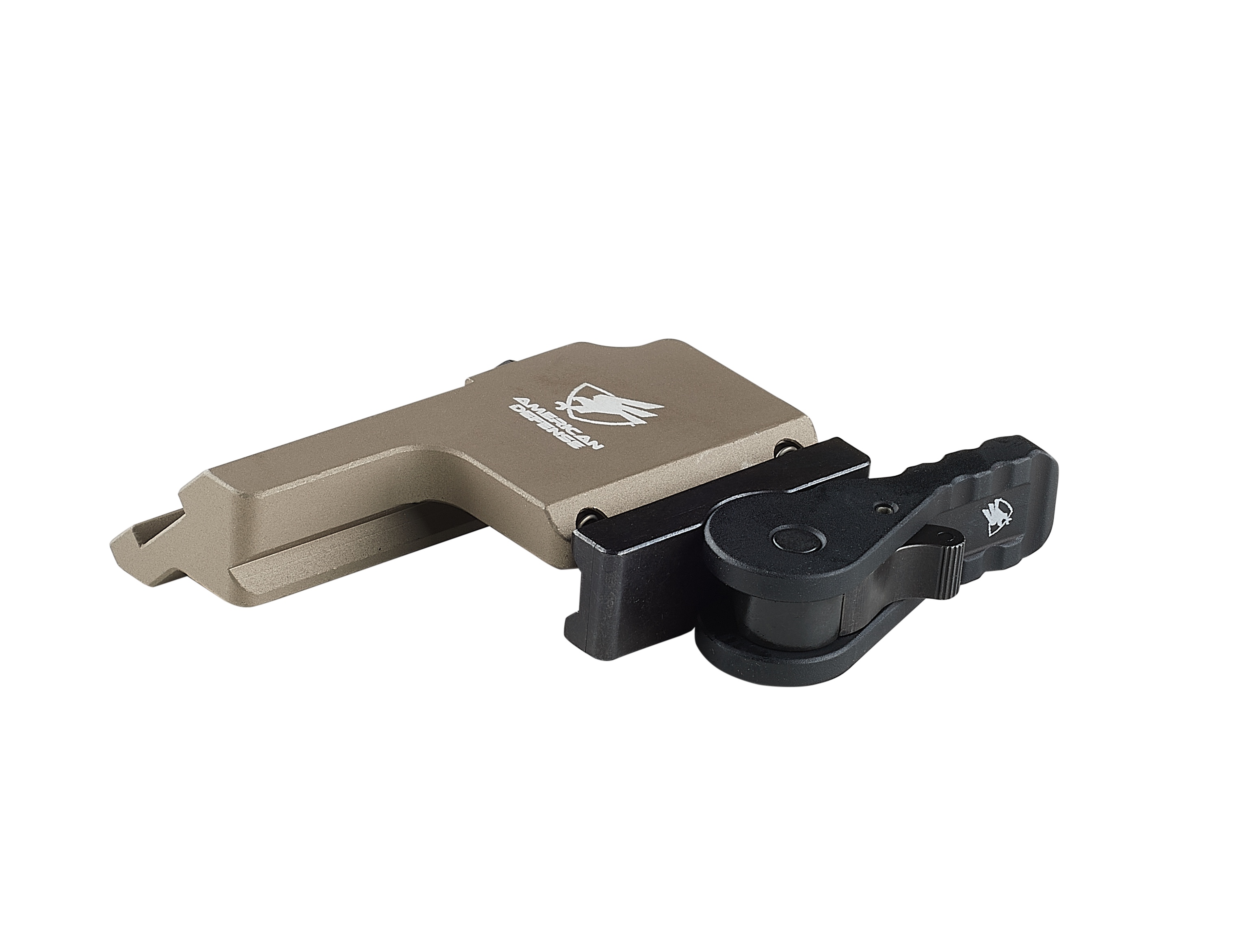 The AD-SF Offset Cantilever mount was designed for mounting the Surefire M600/M300 series Scout Light. The offset mounts are available in 2 different configurations. Offset Left with .9″ of forward cantilever, and Offset Right with .9″ of forward cantilever. It is precision machined from 6061 T6 aluminum and finished in hard coat T3 Mil-Spec anodize. It features the Patented QD Auto Lock™ Lever system to accommodate both in spec and out of spec rail systems.