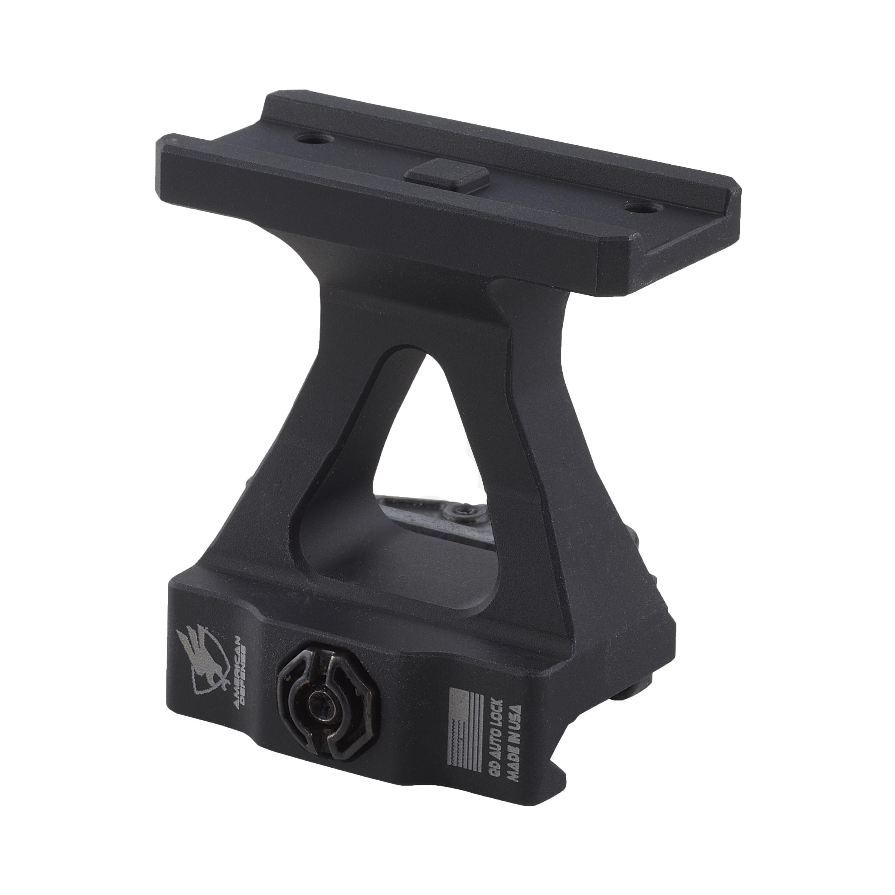 Description– The AD-T1-NV Mount is a one-piece mount that places the Aimpoint® Micro T1/ T2/COMPM5 Optics at a 2.33″ centerline height. This height is ideal for those LE/MIL and self-reliant individuals who utilize night vision devices or protective masks, allowing them to comfortably use all available modes of NV capable optics. This mount also fits the Vortex SPARC, Primary Arms Micro Dot and similar red dots. It is precision machined from 6061 T6 aluminum and finished in hard coat T3 Mil-Spec anodize. It features the Patented QD Auto Lockâ„¢ Titanium Lever system to accommodate both in-spec and out-of-spec rail systems. Features– The AD-T1-NV Mount features the Patented QD Auto Lockâ„¢ Titanium Lever system which has the following advantages: • Reduces overall weight by over 50% • Improves thread pull strength to over 1,800 lbs. • Does not require proprietary tools for adjustment. • Can be adjusted with your finger or a flat blade screwdriver. • Lever can be configured to lock to the front or the rear. • Superior clamping surface to insure maximum rail engagement. Materials & Construction– The AD-T1-NV Mount is precision CNC machined from a block of 6061 T6 aluminum and finished in hard coat type 3 Mil-Spec anodize for a rock hard lasting finish. Precision machined from 6061 T6 Aluminum. Hard coat anodized for a lifetime of performance. Fully adjustable to fit both in spec and out of spec rail systems. American Defense MFG, LLC. products feature a lifetime warranty. Features the Patented QD Auto Lockâ„¢ Titanium Lever system. Made with pride in the U.S.A. Specifications– The AD-T1-NV Mount has the following specifications: Weight: 3 ounces