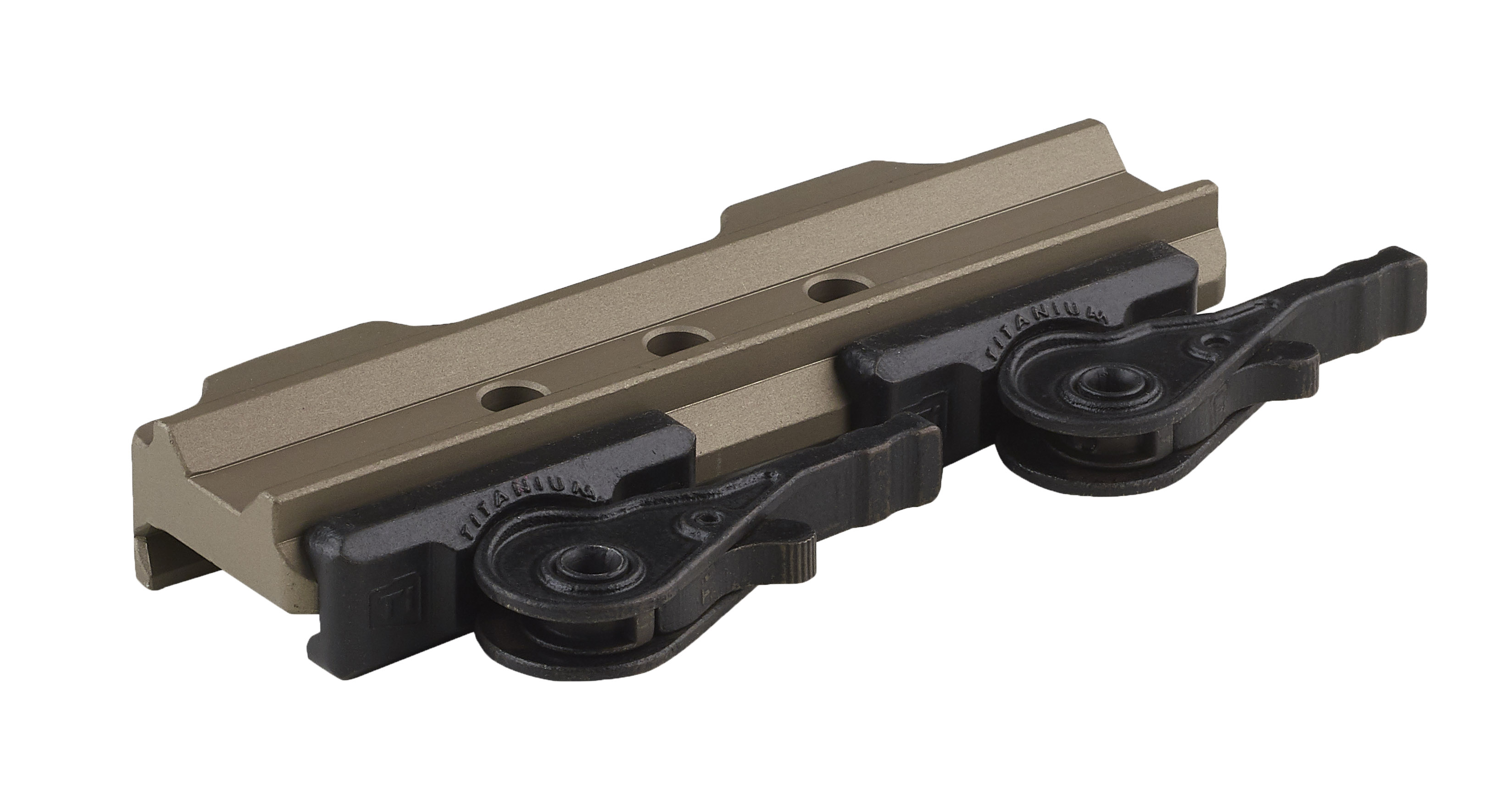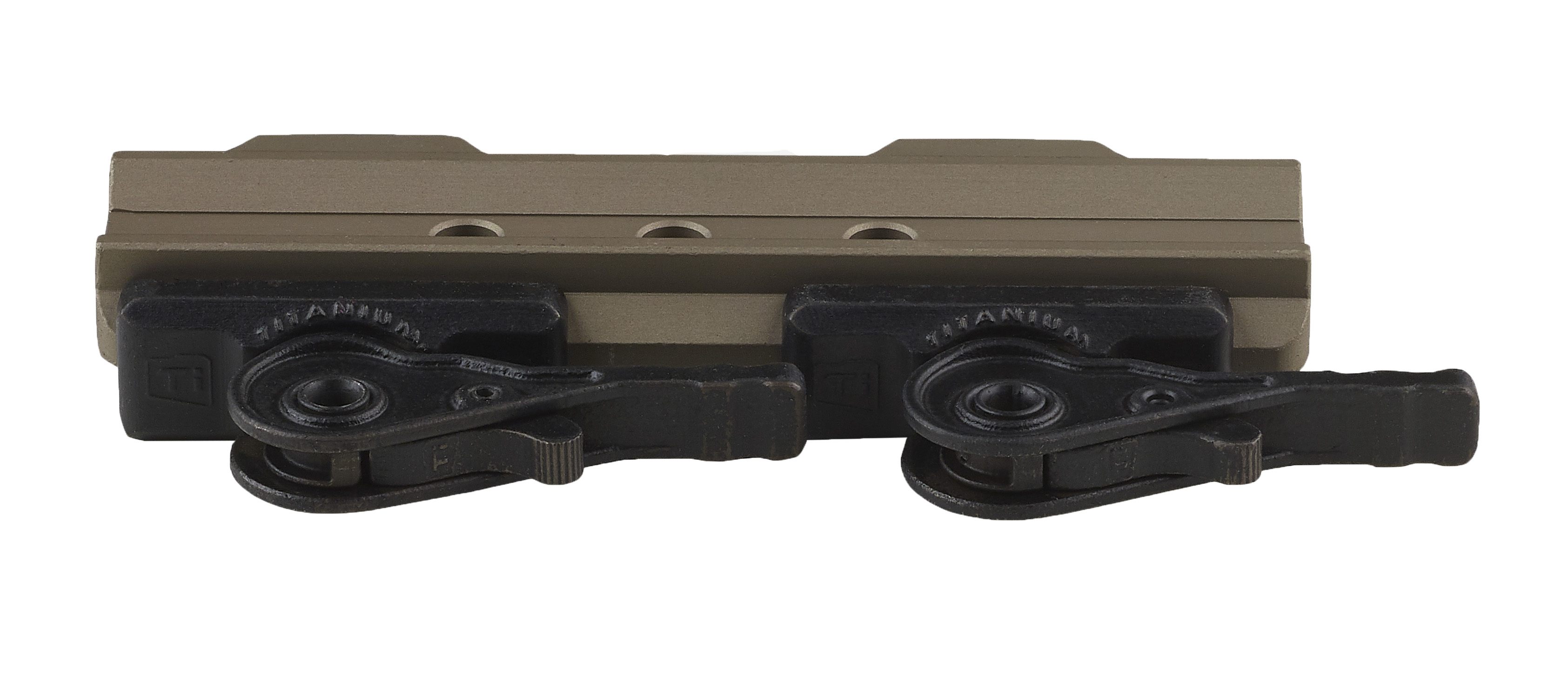 The AD-B3-HD-TL modular base is the large base in our modular lineup. This mount is similar to the AD-B3, but it features a second throw lever for added mount security. Standalone it is mount for the full sized 3x Power ACOG scopes, such as the TA01, TA11, TA31 and the VCOG. Also fits scopes with similar ACOG Style Bases such as the Burris AR-332 and newer model Trijicon RX-30 optics with 3 inline mounting holes. The overall length of the base is 3.5″. It is precision machined from 6061 T6 aluminum and finished in hard coat T3 Mil-Spec anodize. It features the Patented QD Auto Lock™ Titanium Lever system to accommodate both in spec and out of spec rail systems.
