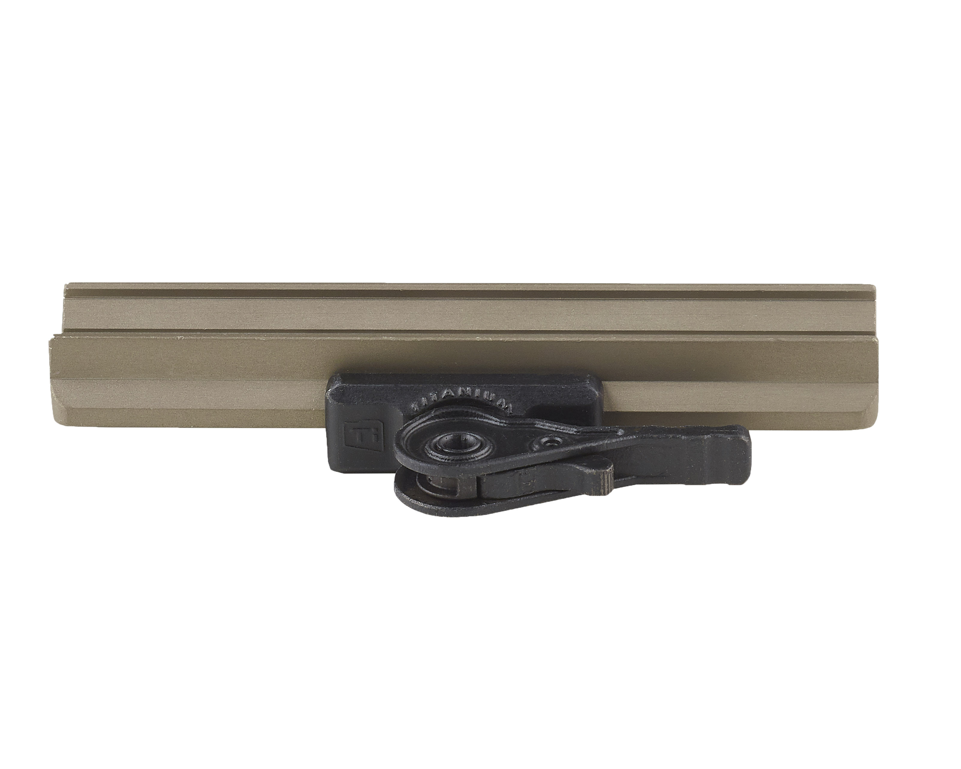The AD-B4-TL modular base is the largest base in our modular lineup. Standalone, it is a full size ACOG mount. Alternatively it can accept several different risers to accommodate a variety of uses. The overall length of the base is 4″. It is precision machined from 6061 T6 aluminum and finished in hard coat T3 Mil-Spec anodize. It features the Patented QD Auto Lock™ Titanium Lever system to accommodate both in spec and out of spec rail systems.